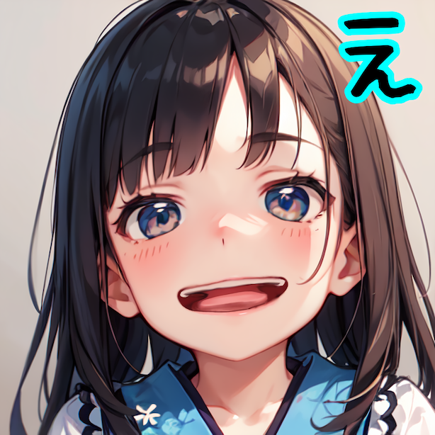口を皿のように横に伸ばして「え〜」。